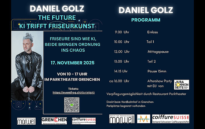 Informationen und Tickets: https://eventfrog.ch/de/p/diverses/daniel-golz-ki-trifft-friseurkunst-7282037690433785240.html